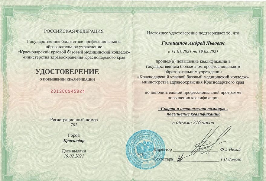 Информация о фельдшере Голощапове